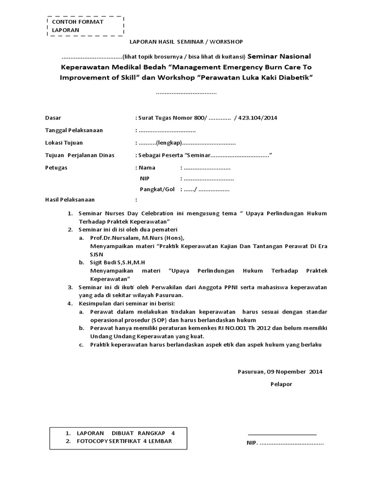 Full format for lp report. Contoh format laporan kursus. 1 LAPORAN SEMINARBENGKELKURSUS.