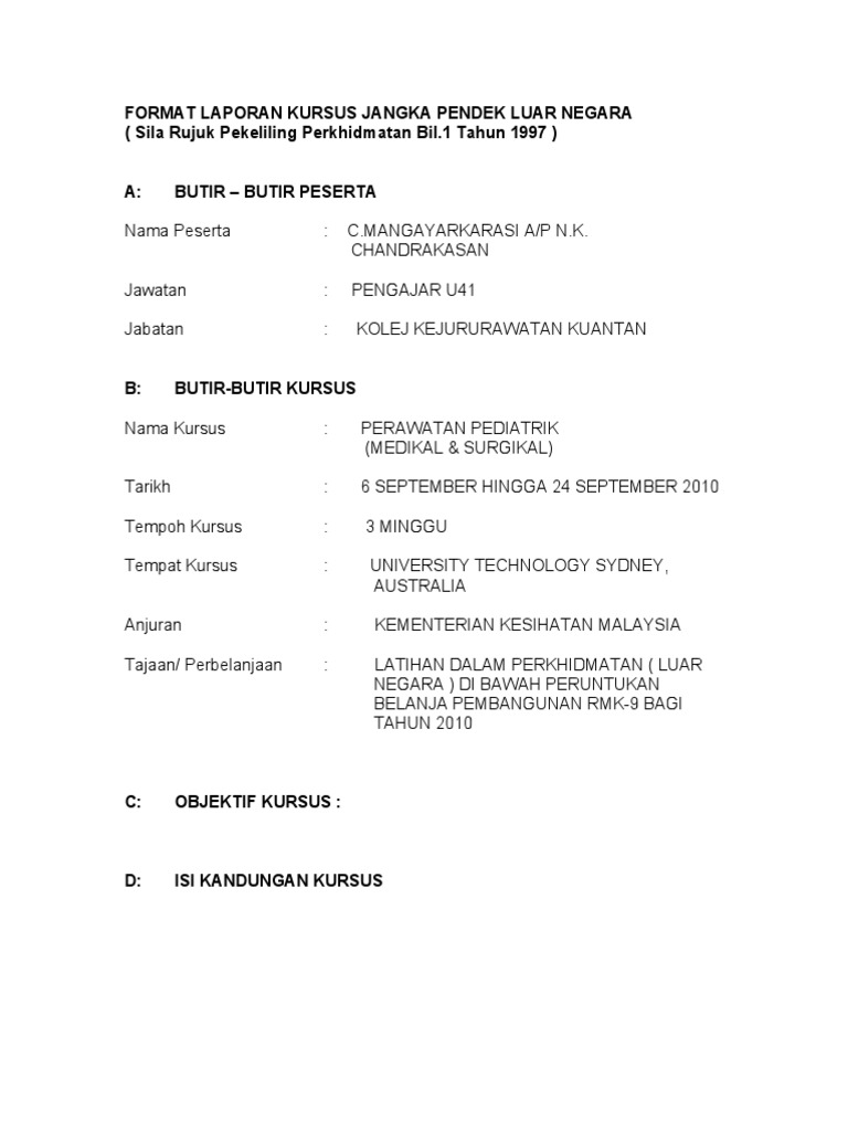 Format Laporan Kursus Jangka Pendek Luar Negara Pdf